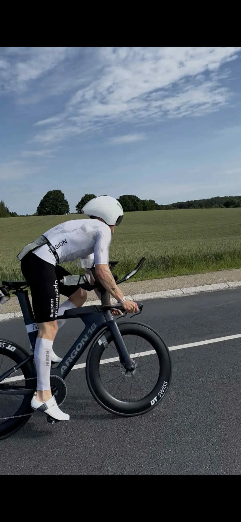 Det blev en lang cykeltur, og jeg havde god tid til at tænke lidt for meget – og samtidig ikke nok tid til at få al den energi, som jeg egentlig havde planlagt. Den første omgang kørte jeg roligt. Der var modvind, det ville blive en lang dag, og jeg tænkte: Jeg kommer jo alligevel ikke til at lave PR… Men pludselig var jeg halvvejs – hvordan skete det så hurtigt? Jeg tog en beslutning: Jeg går efter den PR. Jeg gav den gas. Med medvind ned gennem Strandvejen fløj jeg af sted, og på Geels Bakke blev jeg mødt af det vildeste heppekor fra min klub (Karlslunde Tri). Op gennem landet kæmpede jeg videre, og to ting skete:
